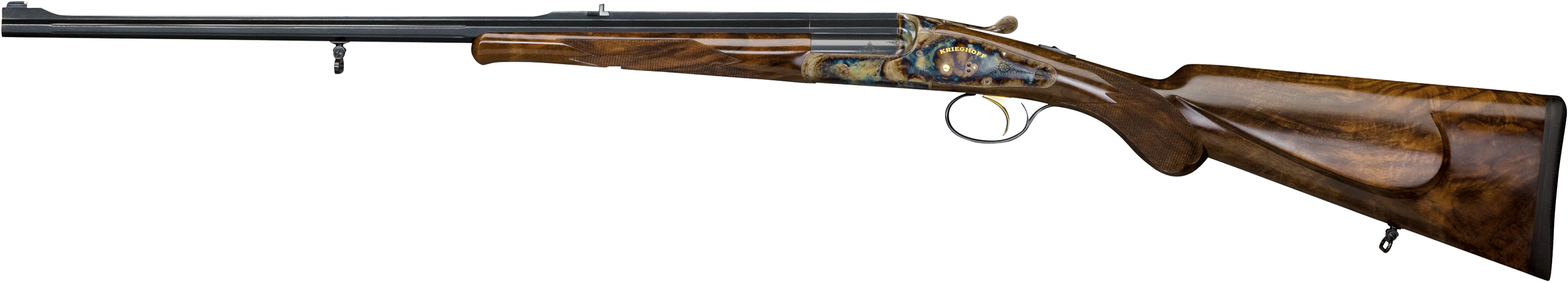 - “Krieghoff” engraved gold on both sides of the action body