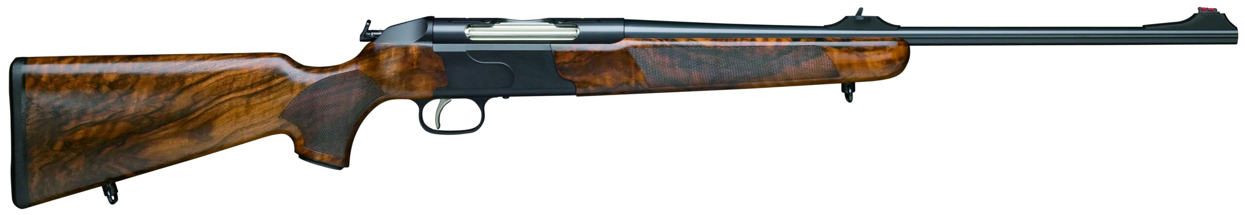 The Krieghoff Semprio is a magazine fed inline repeating rifle with easy tool-free take-down with interchangeable barrels and the utmost in packability and shootability. To operate, the barrel assembly is pushed forward to eject the empty cartridge case. Pulling the unit back feeds the next round from the magazine and the Semprio is ready for an instant follow up shot.