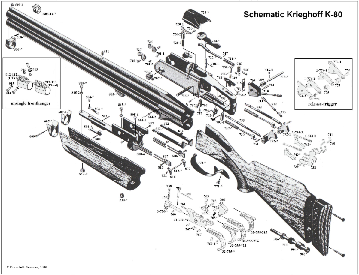 We provide factory parts to service Krieghoff Guns from a classic Drilling to the latest K-80. Common parts requests are items like: